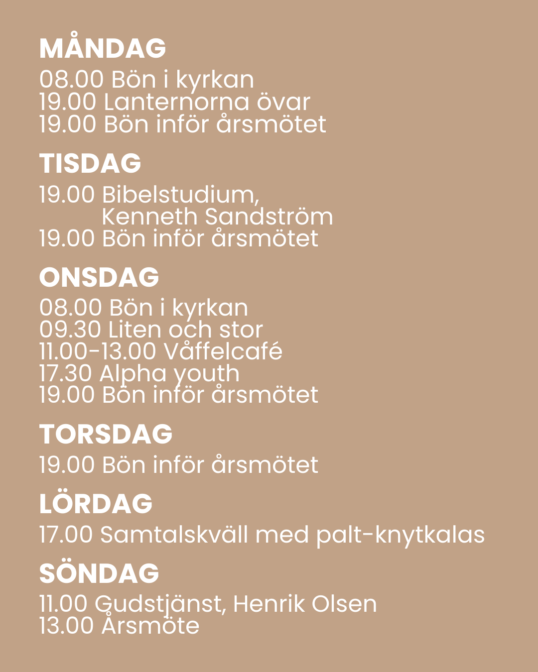 Varmt välkommen att vara med på någon av våra samlingar i veckan!