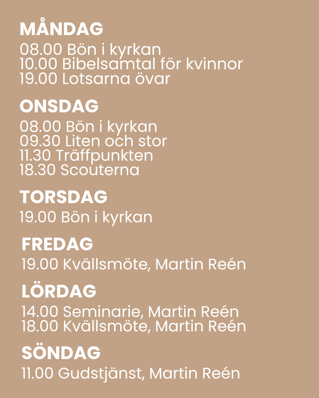 Varmt välkommen att vara med på någon av våra samlingar i veckan!