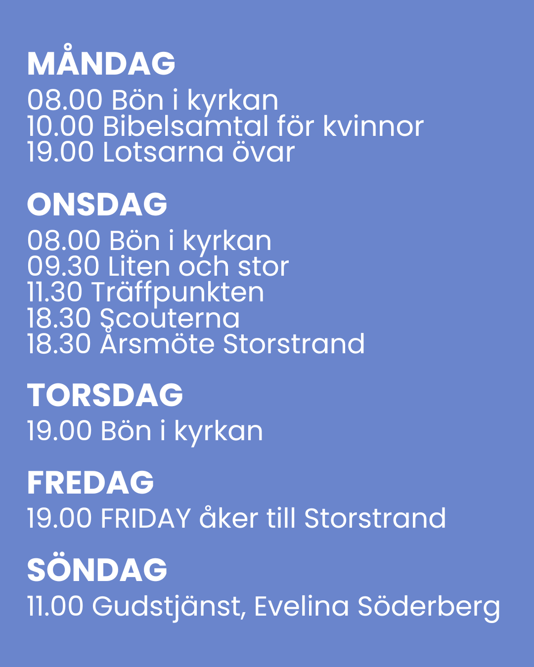 Varmt välkommen att vara med på någon av våra samlingar i veckan!